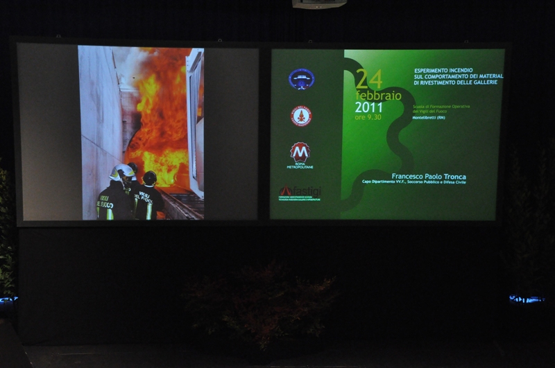Un momento dell'esperimento presso la Scuola di formazione Operativa dei Vigili del Fuoco di Montelibretti/p>